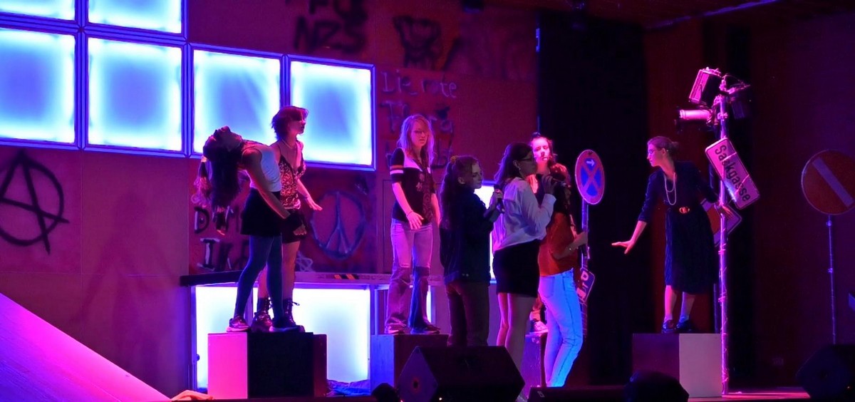 Vom 1. bis 3. Juli stellten wir unseren Mitschüler:innen, Freunden und Verwandten unser Musical „Letzte Schanze!“ vor. In einem emotionalen Auf und Ab behandelten wir die Besetzung der Roten Flora in der Schanze unserer Heimatstadt – nach dem Vorbild des weltbekannten Broadway Musicals „Rent“. Die Geschichte spielt in den Achtzigern und folgt den Mitbewohnern und Freunden Mark, Tom und Rüdiger, die sich in einer prekären Situation befinden und sich zwischen Kunst und Komfort entscheiden müssen. Während die drei ihre eigenen Komplikationen haben, kämpft der Stadtteil um seine Eigenständigkeit. Investoren wollen aus der Flora ein Musicaltheater machen, wogegen sich die Bewohner:innen der Schanze wehren, um das Vive Bohème am Leben zu erhalten.