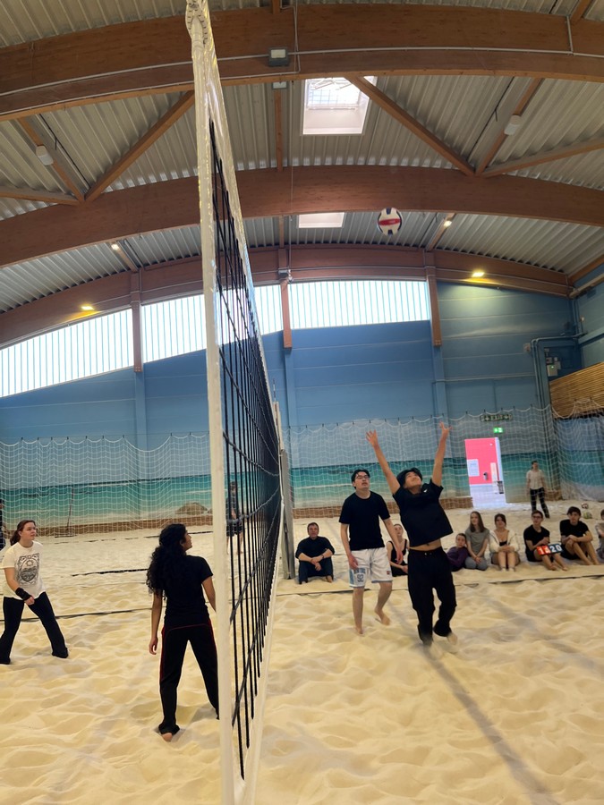 Diesmal gab es zunächst ein reines Jungen- und Mädchenturnier, in dem die Mädchenmannschaft der 10d sich gegen alle weiteren Mädchenmannschaften der 10. Klassen erfolgreich durchsetzen konnte, obgleich nicht alle Spielerinnen an diesem Tag gesundheitlich top fit waren. Dennoch zeigte sich ihre Überlegenheit bei typischen Angriffssituationen, in denen sie souverän agierten und ihre Volleyballerfahrungen von Vereins- und Schulwettkämpfen sichtbar wurden. Auf den zweiten Platz kam die Mannschaft der Mädchen der 10a, die in diesem Halbjahr regulär im Beachcenter Sportunterricht haben, gefolgt von der 10c und 10b. Die Stimmung war ausgelassen und es wurde sehr kämpferisch um jeden Ball gespielt.